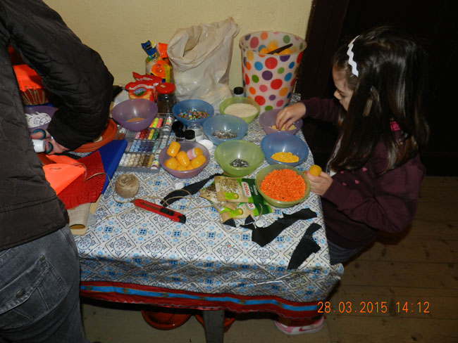 Bild rechts: In einer der zahlreichen Werkstätten konnten die Kinder Musikinstrumente bauen, unter dem Motto "Ohren auf! Musikinstrumente selber bauen – Geschichten werden hörbar und lebendig."