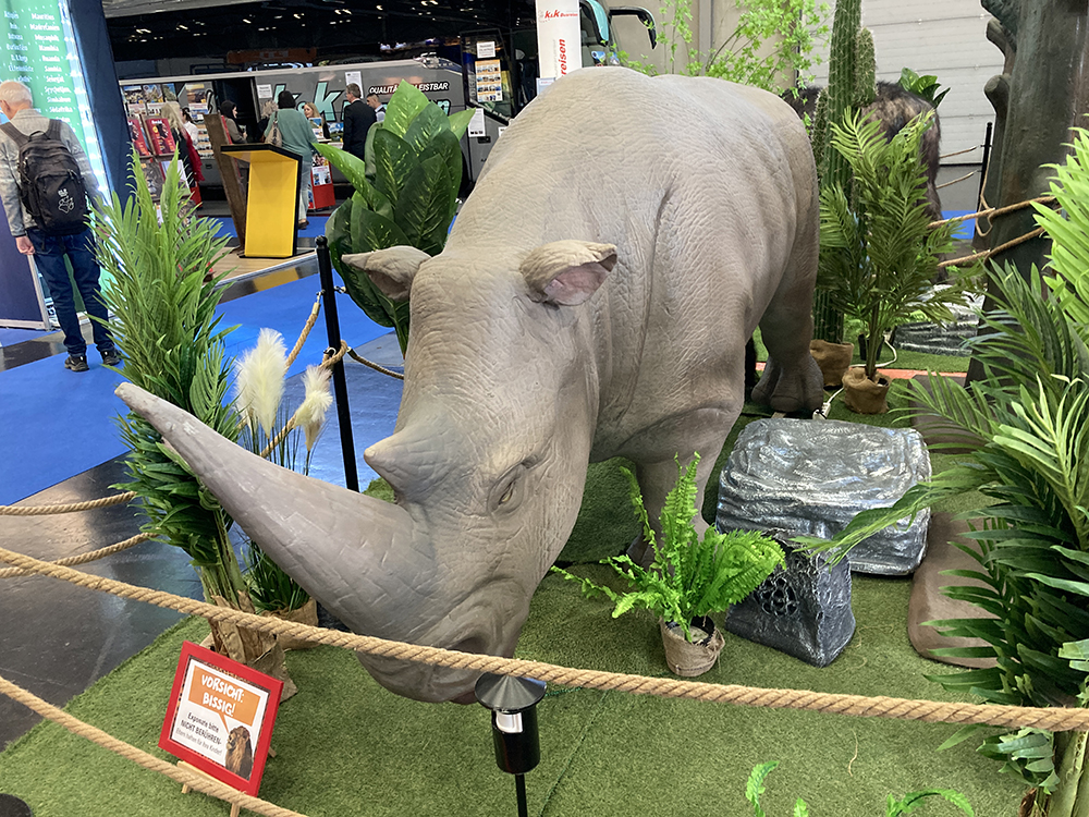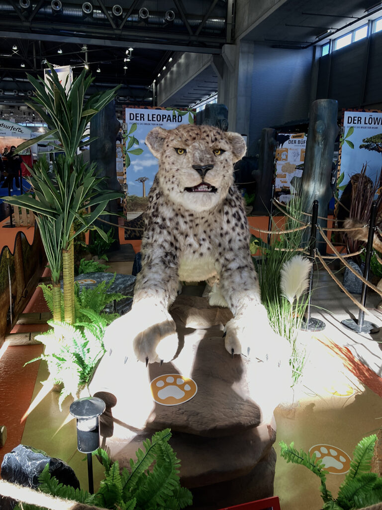 Ein Brüllen bringt mich jäh zurück in die Realität. ,,Africa’s Big 5″, das sind die fünf größten Tiere Afrikas (Afrikanischer Elefant, Spitzmaulnashorn bzw. Breitmaulnashorn, Kaffernbüffel, Löwe und Leopard) bringen echtes Safari-Feeling auf die Ferienmesse. Die Auswahl dieser ,,Big 5″ bezog sich bei Großwildjägern nicht nur auf die Körpergröße der Tiere, sondern hauptsächlich auf die Schwierigkeit und Gefahren bei der Jagd auf sie. Aber in der Halle D laden ausschließlich realitätsnahe Tierexponate aus Kunststoff zum interaktiven Spielen ein. Infotafeln mit den wichtigsten Fakten rund um das jeweilige Tier eröffnen den Besuchern neue Perspektiven und man ist fast geneigt, in die wilde Tierwelt Afrikas einzutauchen. Naja, irgendwie bin ich da schon froh, dass meine beiden kleinen, sehr braven Hündinnen auf mich zu Hause warten – ,,Ingrid’s Small 2″!