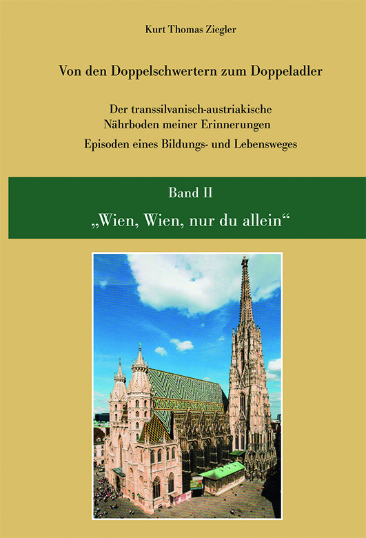 „Wien, Wien, nur du allein“ lautet der Titel des zweiten Bandes der „Episoden eines Bildungs- und Lebensweges“, wie der in Hermannstadt geborene Arzt Kurt Thomas Ziegler seinen literarischen Rückblick nennt. Der genaue Titel lautet „Von den Doppelschwertern zum Doppeladler. Der transsilvanisch-austriakische Nährboden meiner Erinnerungen. Episoden eines Bildungs- und Lebensweges. Band II „Wien , Wien, nur du allein”.