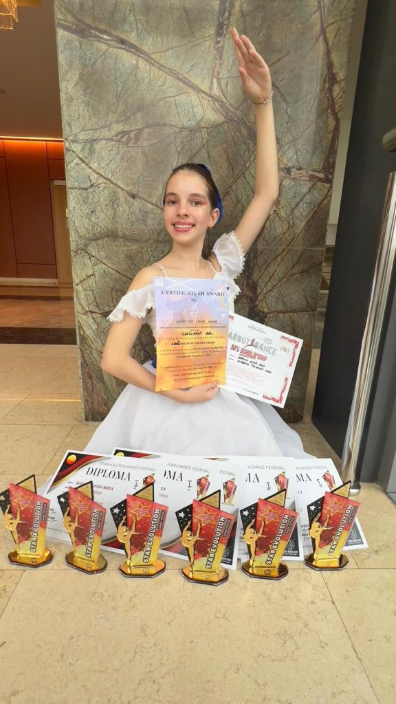 Fünf der sechs ersten Preise erhielt die Brukenthalschülerin in der Kategorie Klassisches Ballett für Pas de trois („Schwanensee), Pavillon d’Armidee, The Sleeping Beauty (Princess Florine), Le Corsaire (3. Odalisque) und Graduation Ball.