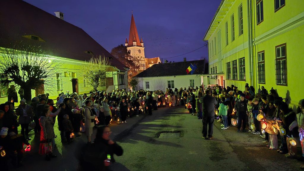 Die deutschen Grundschulklassen der „Ion Luca Caragiale”-Schule (früher Schule Nr. 16) aus Hermannstadt feierten ihr Laternenfest in der evangelischen Kirche in Neppendorf. Foto: Privat