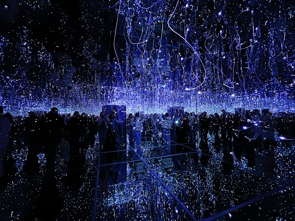Sobald man durch die Drehkreuze des Immersiven Museums durchgeht, tritt man in eine andere Realität ein: Im riesigen 360-Grad-Raum taucht man in einen bunten Weihnachtsfilm ein, Räume mit Spiegeln und Lichtern scheinen endlos zu sein und wenn man durch den Flur geht, kommt ein Lichter-Strichmännlein gleich mit, das die eigenen Bewegungen nachahmt.