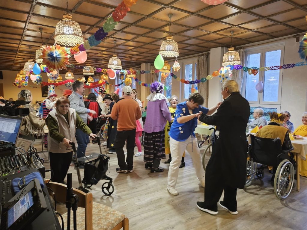 Faschingstreiben im Altenheim: Zwischen Weihnachten und Ostern lassen es die Bewohnerinnen und Bewohner des Dr. Carl Wolff-Altenheims gewöhnlich beim jährlichen Fasching krachen. Letztes Jahr war das nicht möglich. Umso glücklicher waren die Bewohnerinnen und Bewohner aber auch alle Mitarbeitenden, allen voran die Heimleiterin Ortrun Rhein, dass es in diesem Jahr geklappt hat. Das war am Tag vor dem Aschermittwoch. In den entsprechend bunt geschmückten Speisesaal zogen am Dienstag zu den Klängen eines Marsches, den der Musiker Adrian Orlea aus seinem Synthesizer ertönen ließ die verschiedensten Masken ein. Die Stimmung war sehr gut. Es wurde getanzt, es gab Kaffee und Kuchen, Krapfen, und zum Abendessen Pizza auf den jeweiligen Abteilungen. Der Bratschist Marius Ungureanu – der für Proben an einem neuen kleinen Theaterstück angereist ist – gab den Ton zum Mitsingen bekannter Lieder an. Es wurden die schönsten Masken preisgekrönt. Gewonnen haben aber zweifelsohne alle, die mitgemacht haben.