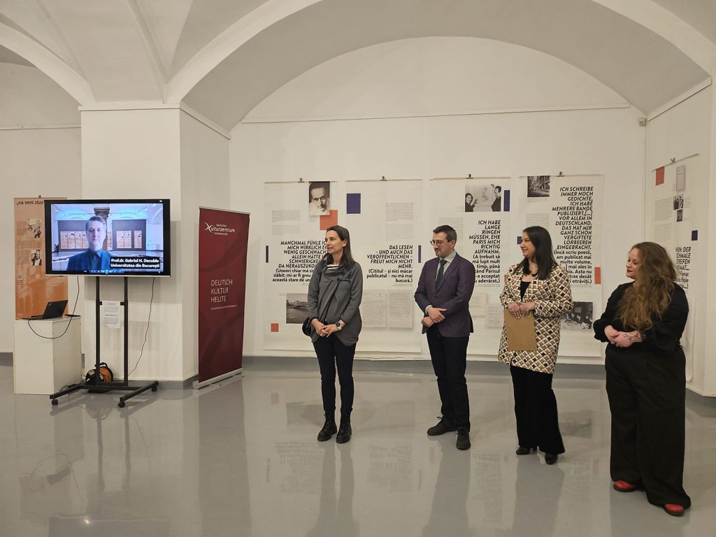Hinzu gesellt sich die Literaturausstellung „PAUL CELAN – unter den Wörtern“, die den Kontext der Werke der beiden Autoren und ihre seelische Verbundenheit beleuchtet. Die Ausstellungen im Museum für zeitgenössische Kunst des Brukenthalmuseums finden im Rahmen der Veranstaltungen zum 100. Geburtstag von Ingeborg Bachmann (1926–1973) statt. „Ich will, daß der Krieg ein Ende nimmt“ – dieser Satz aus Ingeborg Bachmanns Roman „Malina” könnte als Motto über ihrem gesamten Werk stehen. Die Ausstellung wird kuratiert von Helga Pöcheim, basierend auf einem wissenschaftlichen Konzept von Hans Höller, mit Grafiken von Erika Thümmel. Die Übersetzung und Anpassung der rumänischen Version stammt von Monica-Maria Aldea. Bild links (v. l. n. r.): Bei der Vernissage sprachen Andrei Popov vom Österreichischen Kulturforum, Raluca Teodorescu, Managerin des Brukenthalmuseums und seitens des Deutschen Kulturzentrums Hermannstadt Ana-Maria Daneș und Iris Ordean (Foto: Beatrice UNGAR); Bild rechts: Der Briefwechsel zwischen Ingeborg Bachmann und Paul Celan wurde unter dem Titel „Herzzeit” 2008 im Suhrkamp Verlag Frankfurt am Main herausgegeben.