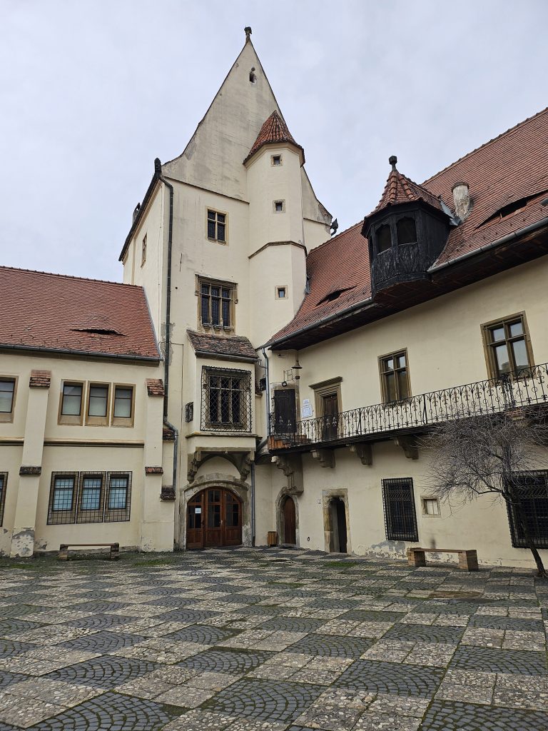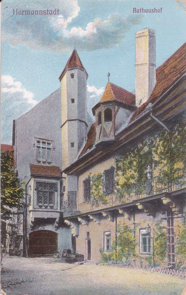 Nachkommen vom Bürgermeister Thomas Altemberger hatten materielle Schwierigkeiten. So kaufte die Stadt im Jahre 1545 das Anwesen am Beginn der Fleischergasse um 1922 Gulden und 64 Demare, um hier während vierhundert Jahren das Rathaus zu betreiben. In der zweiten Hälfte des 19. Jahrhunderts konnte man hier nach Anmeldung beim Archivar aus einem Raum beim Erker vom Treppenturm zum Archiv kommen, in welchem sich Urkunden, Akten, Protokoll- und Rechnungsbücher sowie Handschriften nicht nur über Hermannstadt, sondern auch über Schäßburg, Kronstadt, Mediasch, Bistritz, Mühlbach, Schenk, Reussmarkt, Reps, Leschkirch und Broos befanden. Bid oben: Wohnturm und Treppenturm im Innenhof des Rathauses um 1904; Bild unten: Wohnturm und Treppenturm heute, im Innenhof des Historischen Museums im Alten Rathaus.