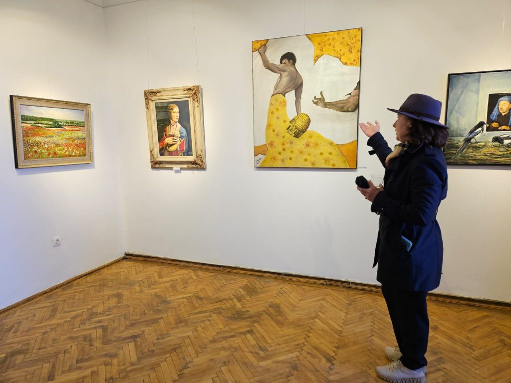 Wer hätte das gedacht: Der aus dem niederländischen Drents-Museum entwendete goldene Dakerhelm – bekannt als „Coiful de la Coțofenești” – und zwei der drei Anfang 2025 gestohlenen dakischen goldenen Armreifen sind inzwischen nach Rumänien zurückgekehrt… und nun ist der Helm schon in der Alten Schule in Michelsberg zu sehen… Die Malerin Claudia Sasu-Weindorf hat ihn in der Hand eines jungen Mannes dargestellt, der dem Betrachter den Rücken zukehrt. Ihr Werk ist in einem der drei Räume des Frühlingssalons Michelsberger Künstlerinnen und Künstler zu sehen, der am Samstag in der Alten Schule eröffnet wurde.