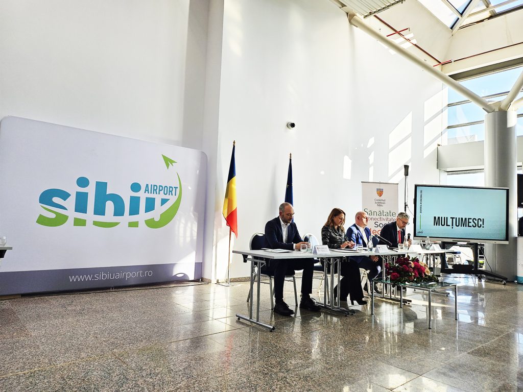 Erwartungsgemäß gab es einen Schlagabtausch bei der in der VIP-Lounge auf dem Hermannstädter Internationalen Flughafen anberaumten Tagung des Kreisrats am 26. Februar. Der frühere Flughafenkommandant und derzeitige Kreisrat Augustin Sava kritisierte die neue Leitung des Flughafens und die Leitung des Kreisrats aufs Heftigste. Die Kreisratsvorsitzende wies alle Beschuldigungen ab. Im Anschluss an die Tagung gab es eine Besichtigung für alle interessierten Kreisräte. Unser Bild (v. k. n. r.): der stellvertretende Kreisratsvorsitzende Vlad Vasiu, die Kreisratsvorsitzende Daniela Cîmpean, der Generalsekretär des Kreisrats Ioan Radu Raceu, der Generaldirektor des Flughafens, Marius Ioan Gîrdea.