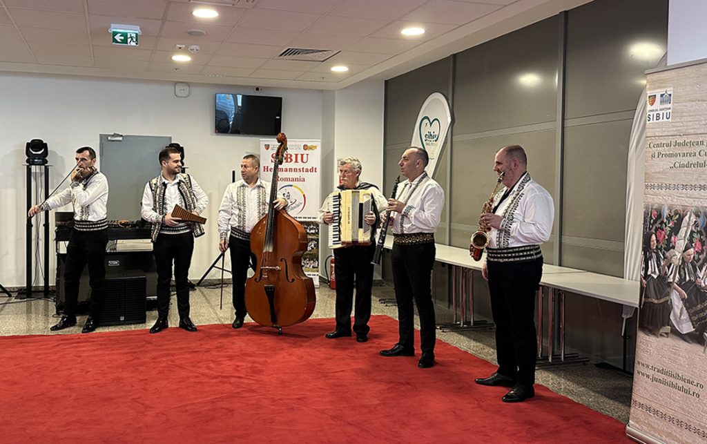 Die Instrumentalgruppe des Folkloreensembles „Cindrelul-Junii Sibiului ” machen nicht nur während der Messe gute Werbung für Hermannstadt. Foto: Ruxandra STĂNESCU